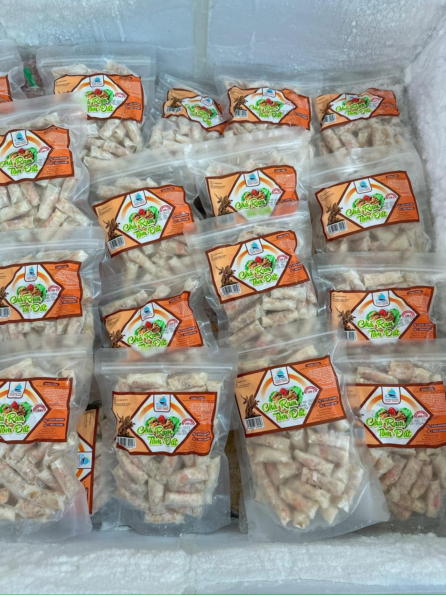 Từng cuốn chả ram nhỏ xinh, được gói tay từ tôm đất tươi bóc vỏ, thịt heo xay nhuyễn, hành tiêu dậy mùi, cuốn gọn trong lớp bánh tráng mỏng. Tất cả được hút chân không kỹ lưỡng – đảm bảo tươi ngon, sạch sẽ, tiện lợi bảo quản.